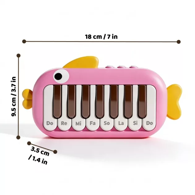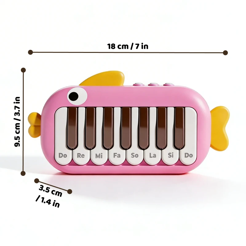 Brinquedo muito divertido! As teclas ajudam meu filho a aprender sobre notas enquanto se diverte. É pequeno o suficiente para levar em viagens de carro, perfeito para nós.