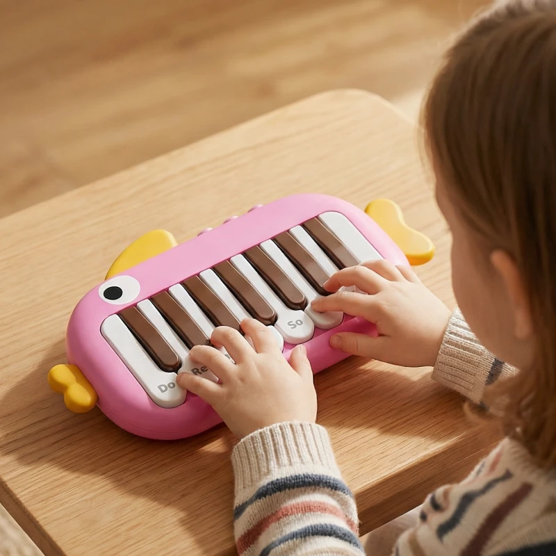 Melhor presente para nossos gêmeos—eles brincam juntos e alternam entre músicas engraçadas e praticando. Gosto de como ele é resistente, aguenta bem as brincadeiras mais agitadas.