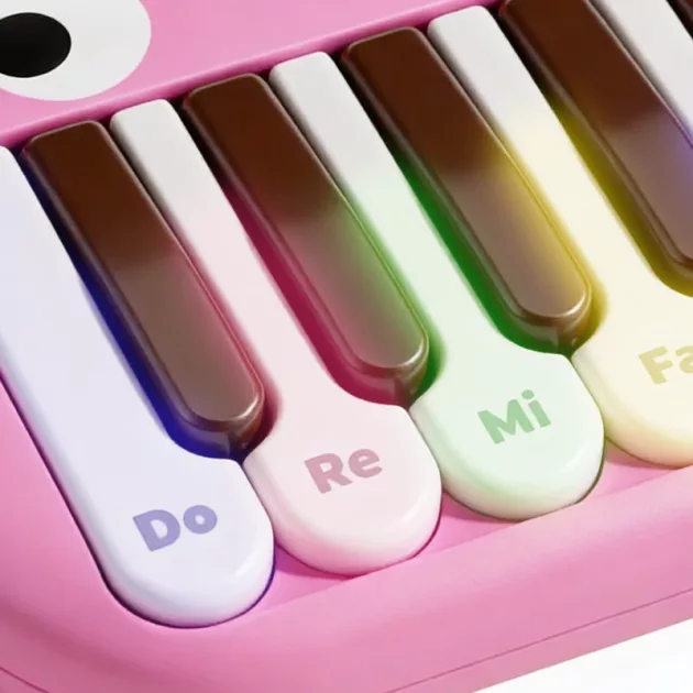 Meu sobrinho sorri toda vez que toca no novo teclado dele. As cores vivas deixam tudo mais divertido e ele se sente um músico de verdade.