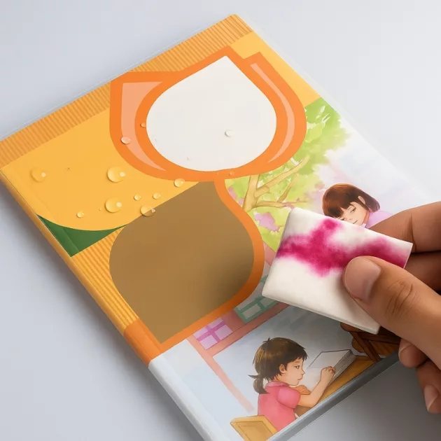 Meu livro de ciências sobreviveu a vazamentos de suco sem manchas! O protetor deslizou rapidamente. Gosto de como as páginas amassadas agora ficam retas.