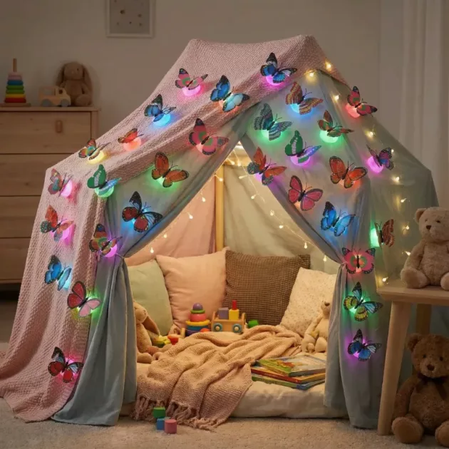 As borboletas emitem um brilho mágico que deixa meu filho confortável e feliz. Também foi super rápido decorar.