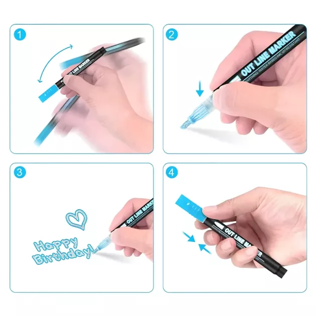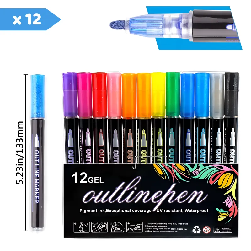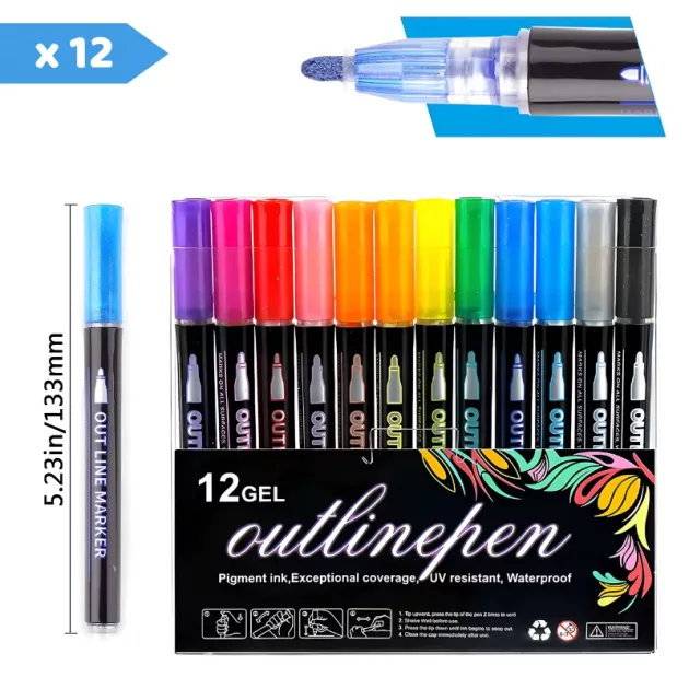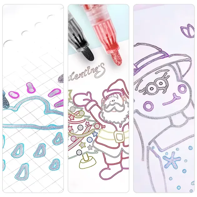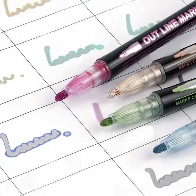 Duplo Contorno Fácil - As crianças conseguem efeitos impressionantes com cada movimento suave. O design único adiciona um toque metálico instantâneo a todas as criações.