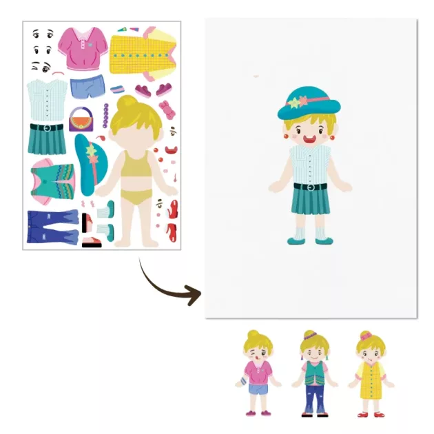Minha filha adora misturar todas as roupas e rostos engraçados! Os adesivos descolam facilmente e não deixam bagunça na mesa ou nas mãos.