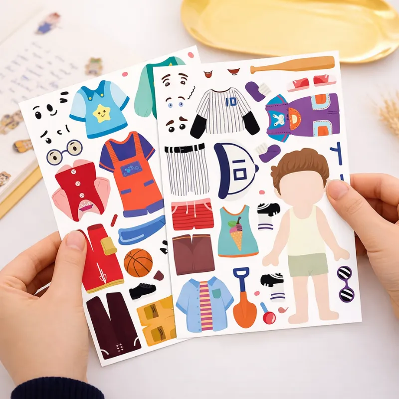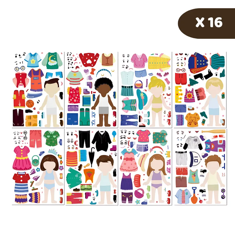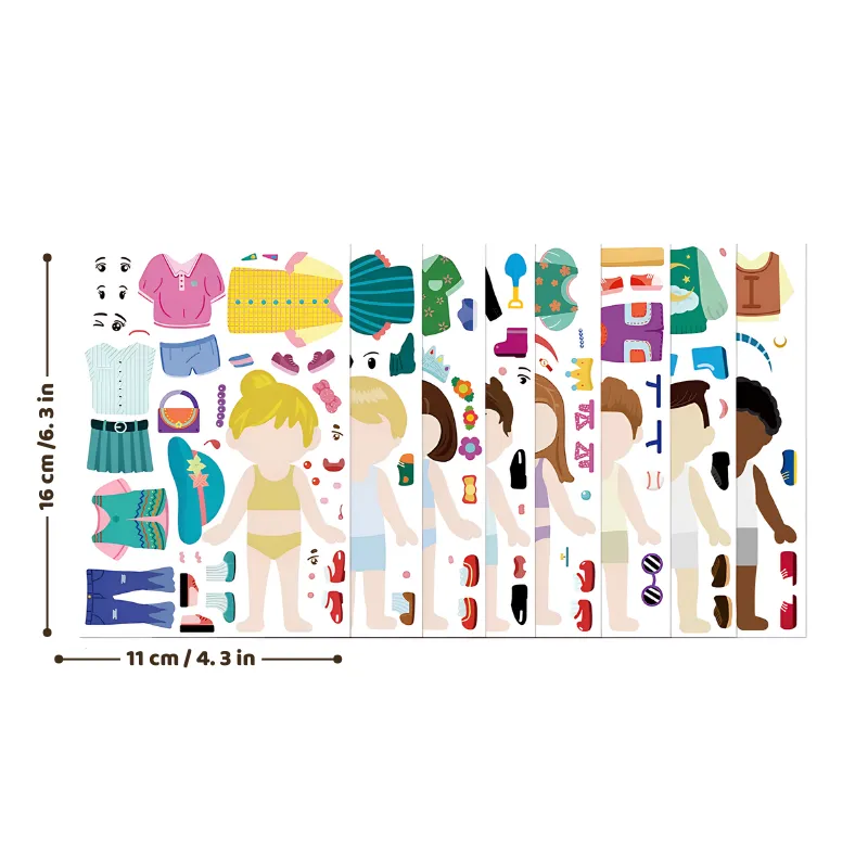 Minha filha adora misturar todas as roupas e rostos engraçados! Os adesivos descolam facilmente e não deixam bagunça na mesa ou nas mãos.