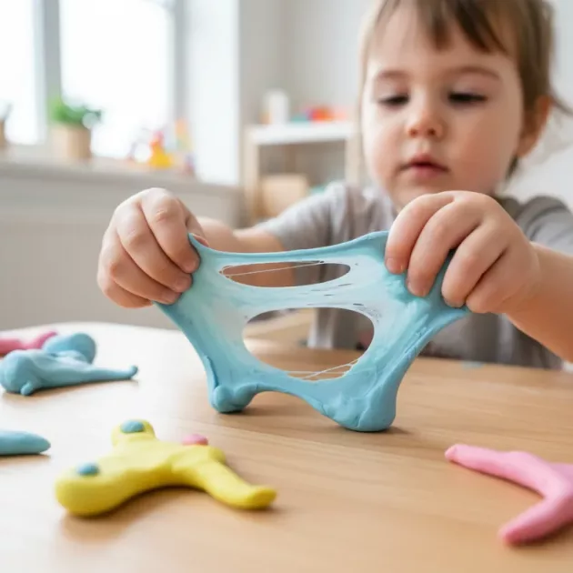É divertido de apertar e fácil de abrir. Minha irmã e eu fizemos formas de comida para as bonecas e nossas mãos ficaram bem limpas.