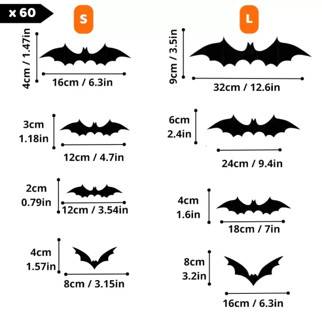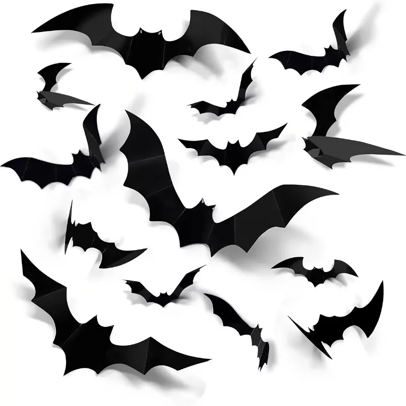 Esses morcegos deixaram meu quarto super assustador. Os tamanhos diferentes são legais porque dá pra fazer sua própria família de morcegos na porta!