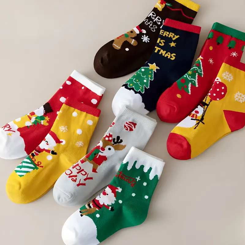 As meias de Natal deixaram meus filhos tão felizes! Eles nunca querem tirá-las porque são macias, fofas e mantêm os dedos bem quentinhos.