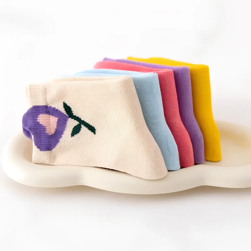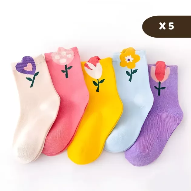 5 Pares de Meias Coloridas com Flores para Crianças