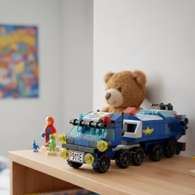 Este conjunto de carro policial é incrível para construir qualquer coisa que você imaginar. Meu irmão e eu adoramos fazer novos carros e correr com eles depois da escola.