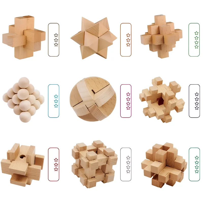 A madeira é agradável ao toque e os quebra-cabeças são difíceis o suficiente para você realmente se concentrar. Bom para memória e paciência!