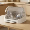 Fica bem ao lado da pia e economiza espaço na bancada. Além disso, as mamadeiras estão sempre prontas para as mamadas noturnas.