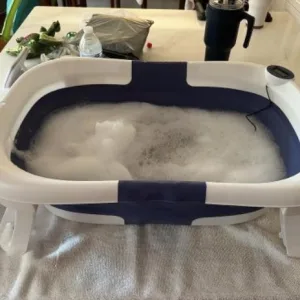 Produto incrível! O silicone é de alta qualidade e o termómetro garante a temperatura perfeita da água. Recomendo vivamente esta banheira.