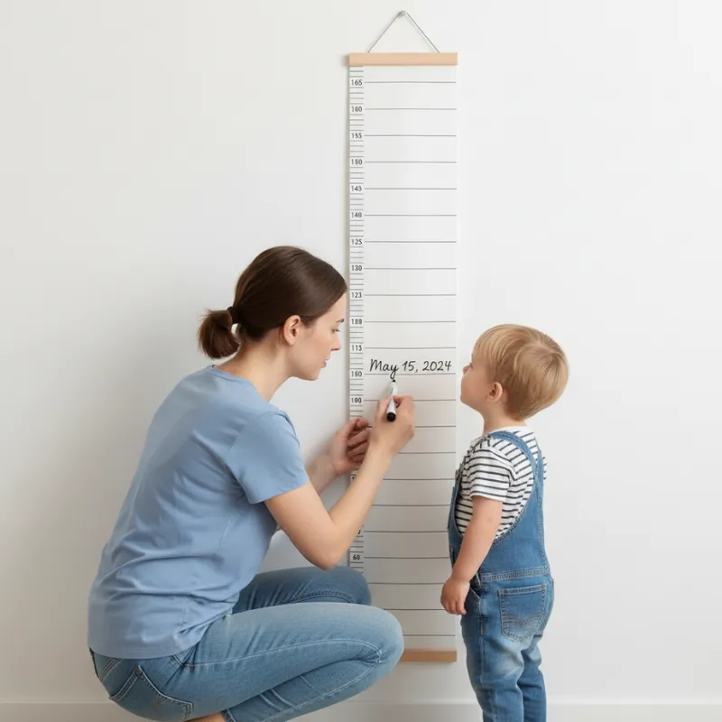 Acompanhe o Progresso - Registre cada centímetro de crescimento com facilidade e clareza. Marcas simples ajudam você a guardar essas memórias especiais para sempre.