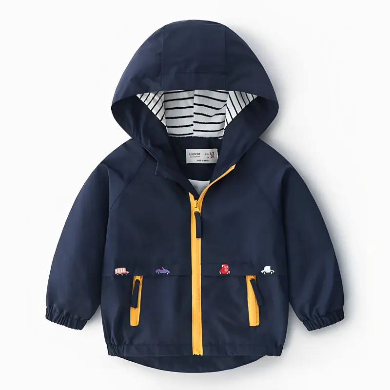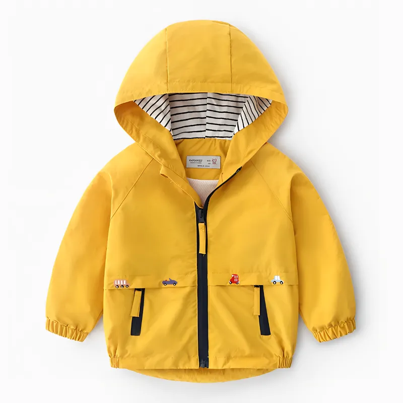 Dias chuvosos ou ventos não vão parar as aventuras. Esta jaqueta ajuda a manter seu pequeno seco, permanecendo leve e confortável. Cores vivas e designs alegres tornam o vestir-se fácil e divertido. Os pais podem relaxar sabendo que seu filho aproveita cada saída com conforto.