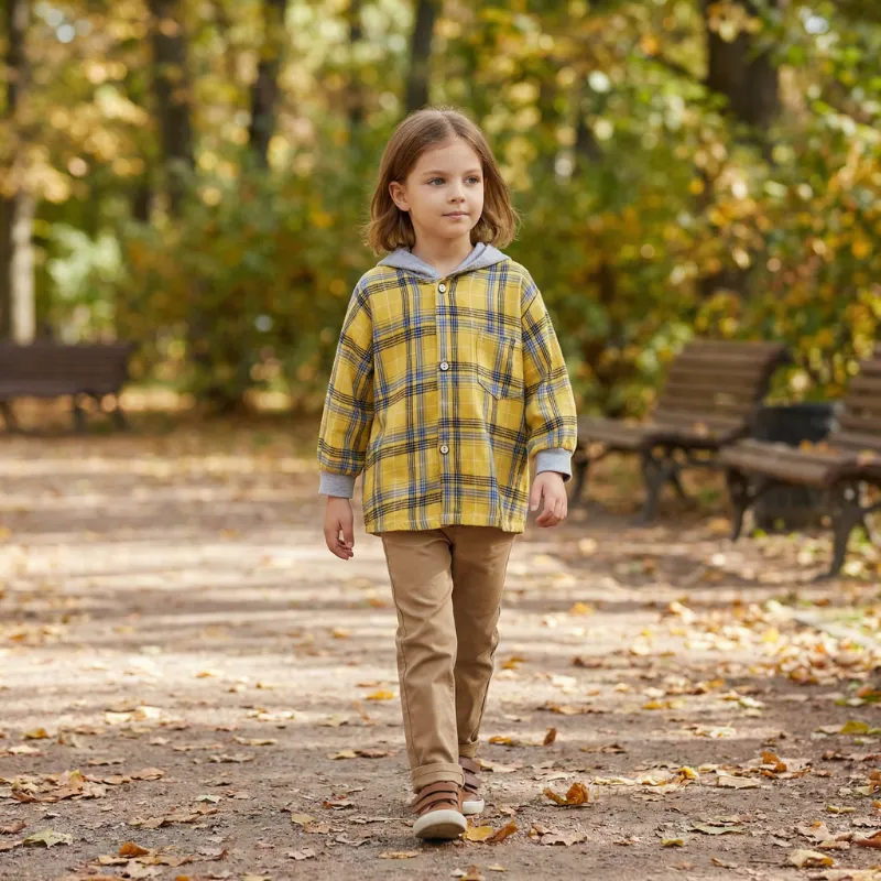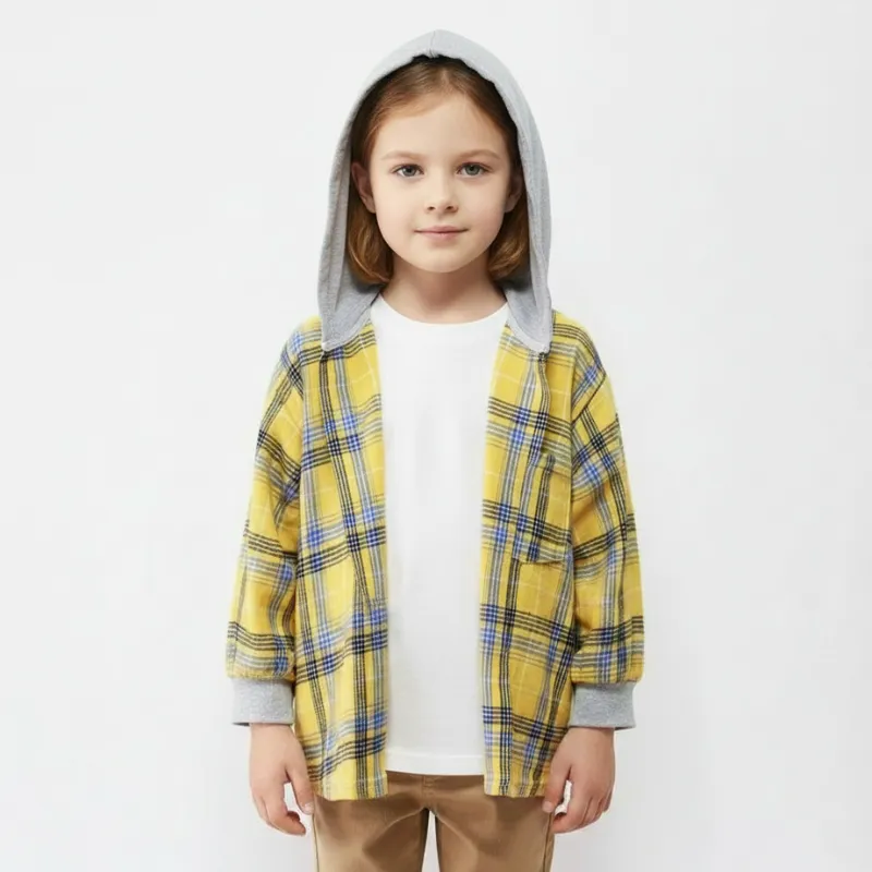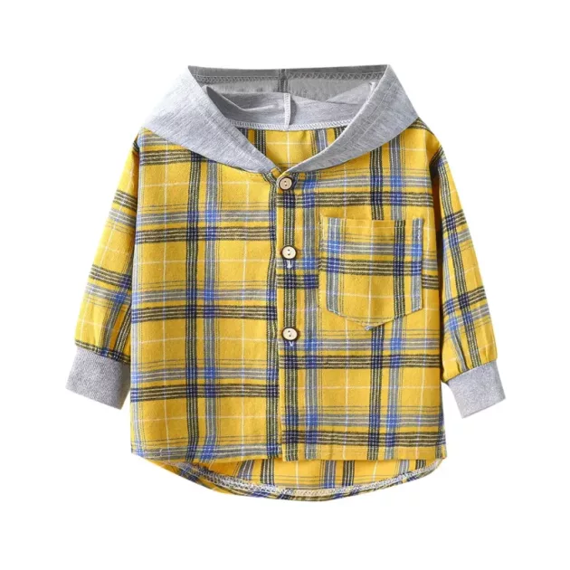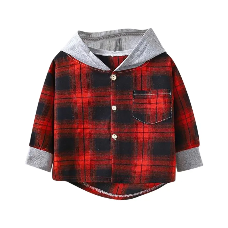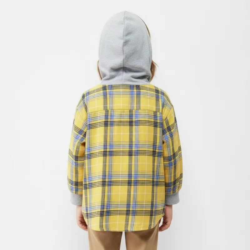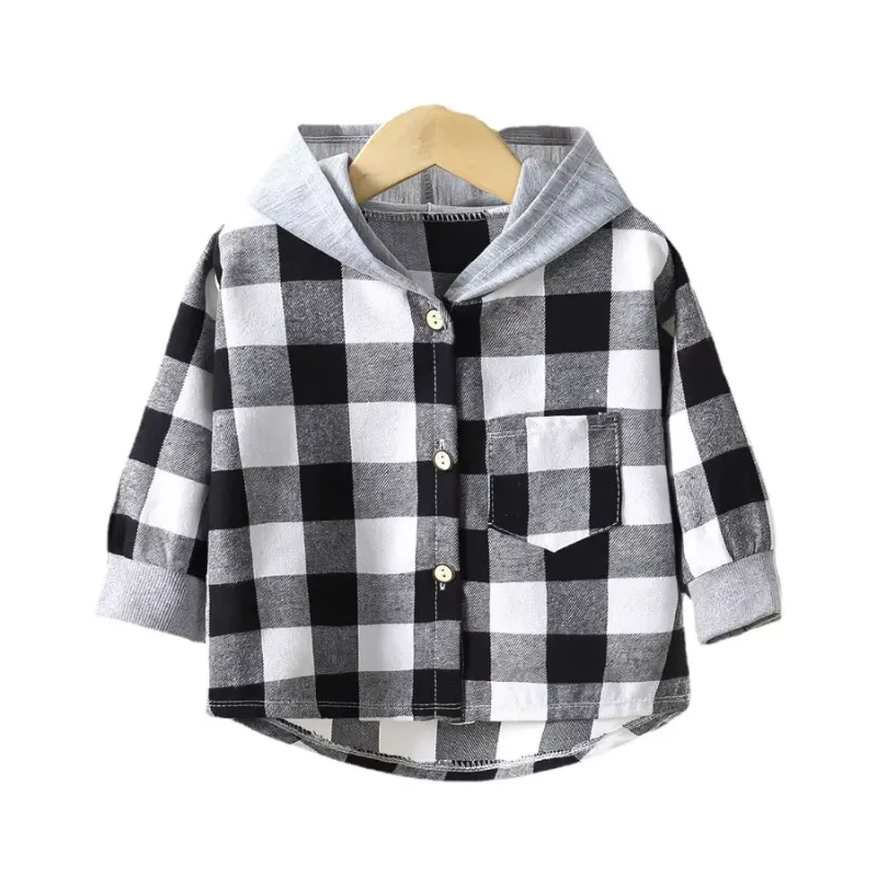 Camisa Infantil com Capuz, Fechamento em Botões, Xadrez de Algodão