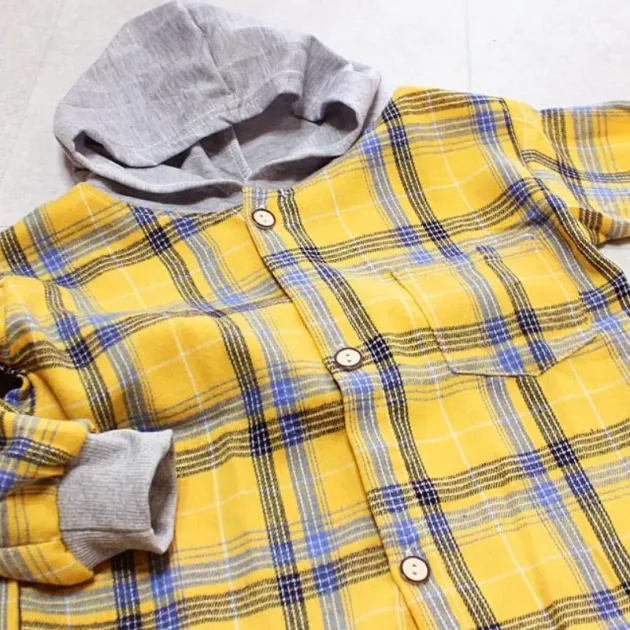 Camisa xadrez macia para todas as estações. O capuz é o favorito e não tem etiquetas incômodas para irritar meu filho.