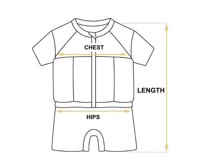 Maiô Flutuador Infantil com Touca e Estampa Fofa Tabela de Tamanhos