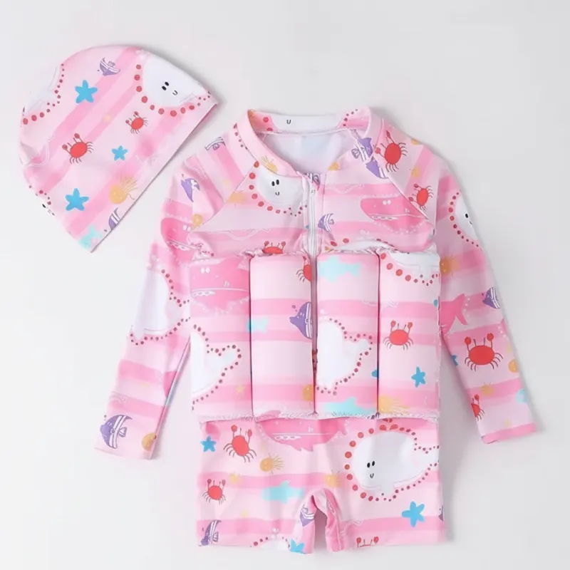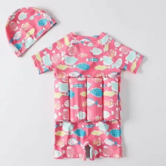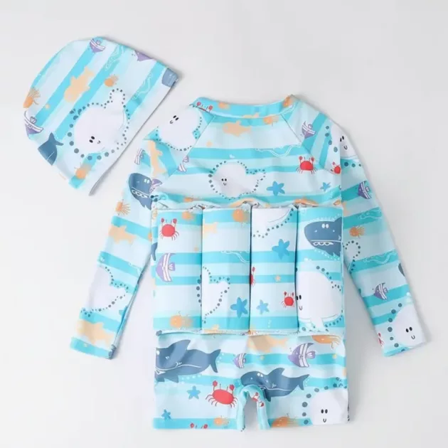 Maiô Flutuador Infantil com Touca e Estampa Fofa