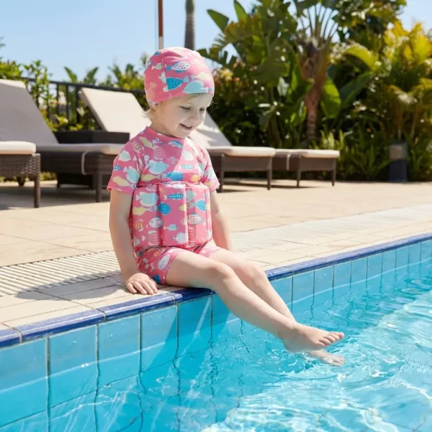 Comprei este adorável maiô para nossos passeios de fim de semana na piscina. Os painéis flutuantes mantêm meu pequeno estável para que possamos relaxar e rir juntos.