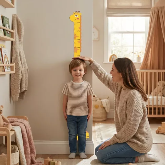 Fazemos uma festa a cada aniversário marcando na régua. A girafa é adorável e faz todo mundo sorrir toda manhã!