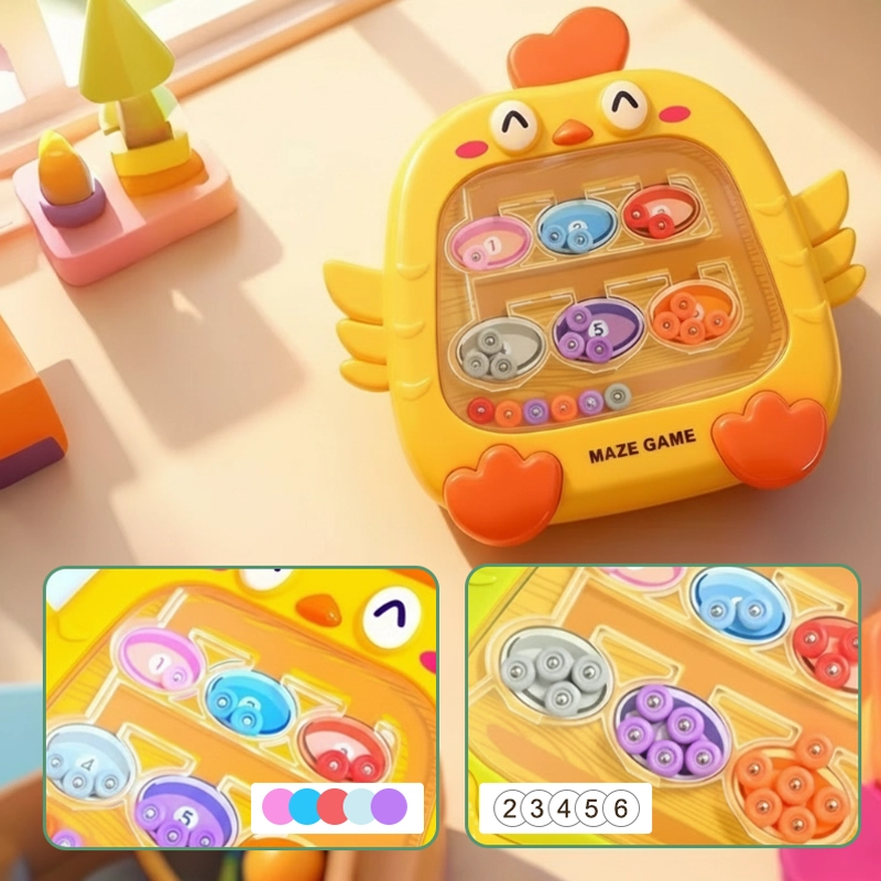 Minha menina ficou animada com os números graças ao labirinto de frango. Ela adora combinar todas as cores sozinha.