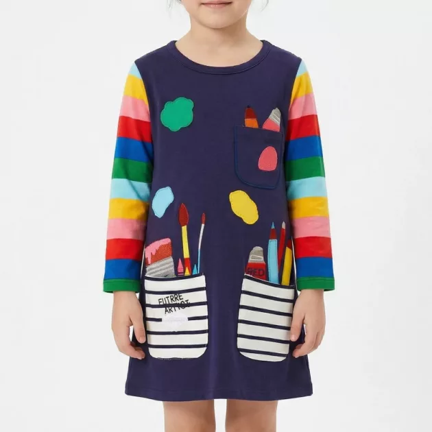 Comprei este vestido fofo para minha sobrinha e ela não para de rodopiar. As cores são alegres, o tecido é macio e ela adora esconder adesivos nos bolsos.