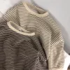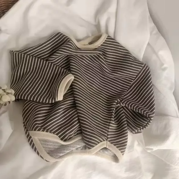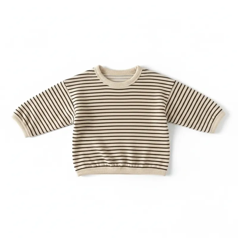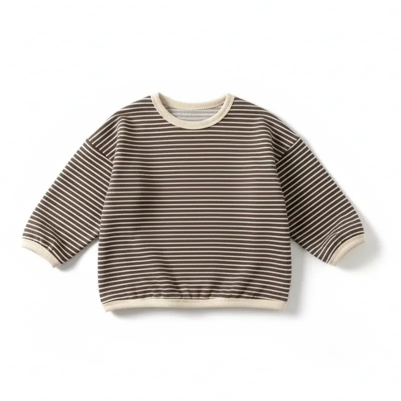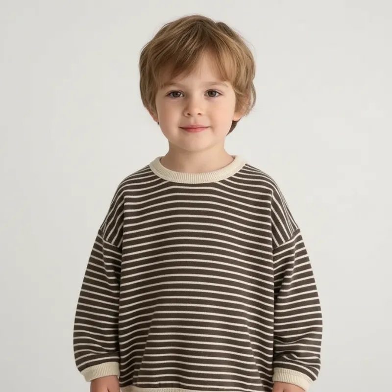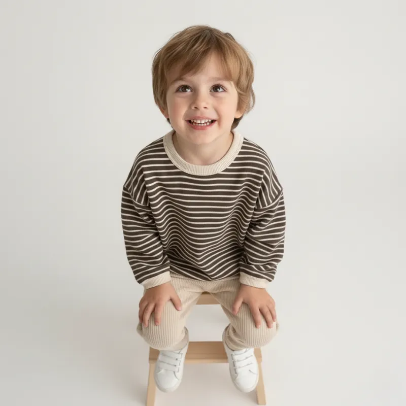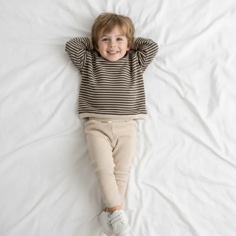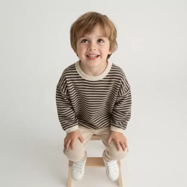 O algodão macio mantém a pele confortável durante o tempo de brincar e de descanso. As listras suaves criam um visual encantador para todos os dias. O tecido de qualidade facilita a lavagem e prolonga as cores. Vestir-se fica divertido e simples para os pequenos.