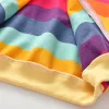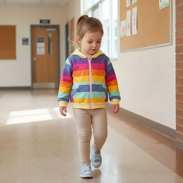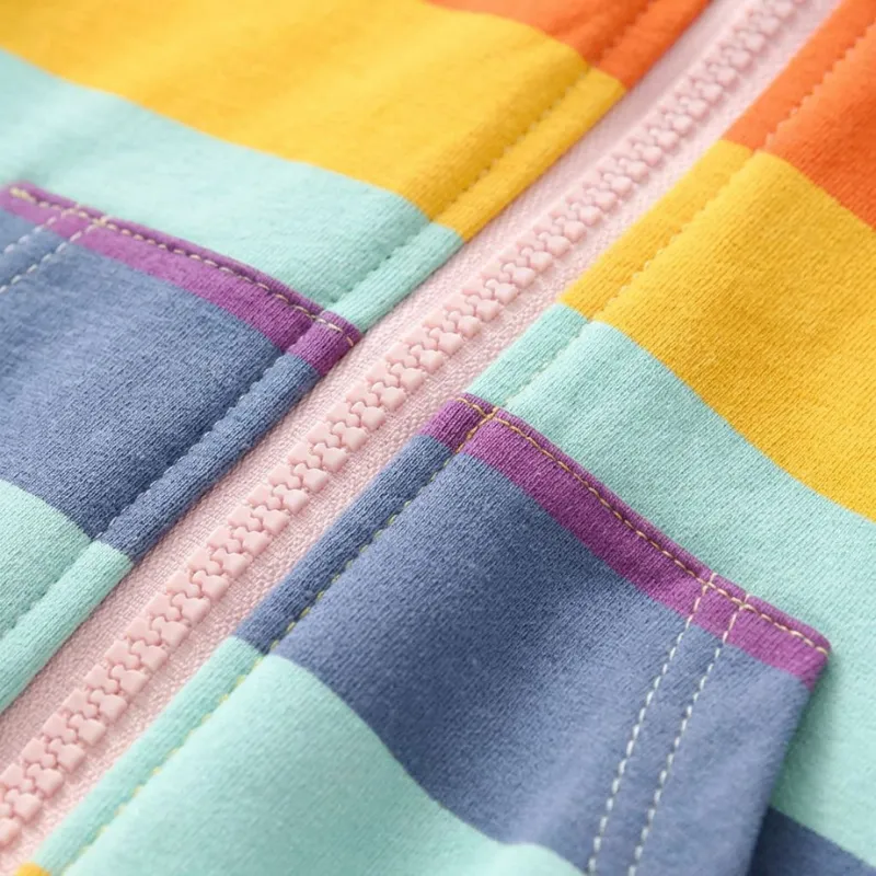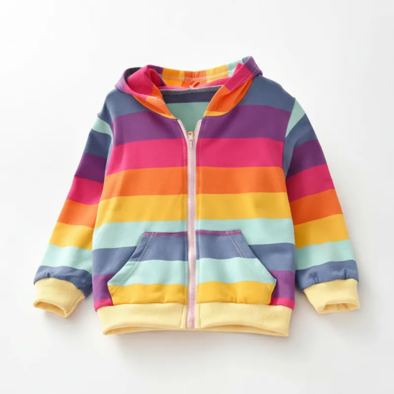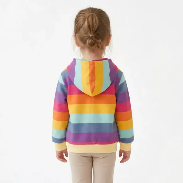 Meu filho pede este moletom com capuz todas as manhãs. É macio, leve e as listras coloridas tornam o momento de se vestir realmente divertido agora.