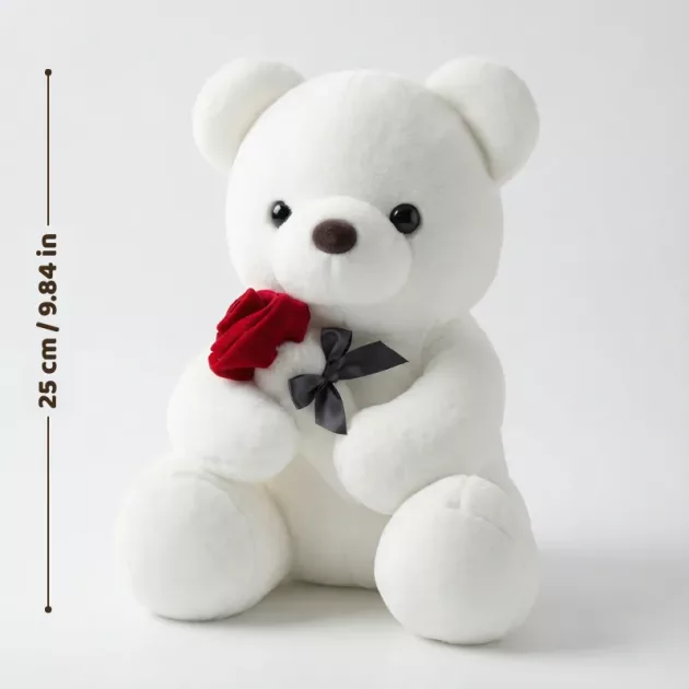 Comprei esse ursinho de pelúcia para o Dia dos Namorados e minha melhor amiga adorou! Muito fofo com a rosa e fácil de manter limpo.