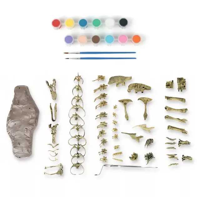 Eu adoro ciência e esse kit de dino é perfeito para montar e pintar. Agora sei onde ficam os ossos do T-Rex. É super legal!