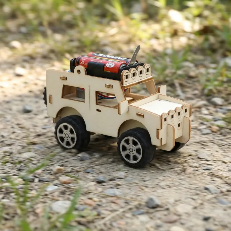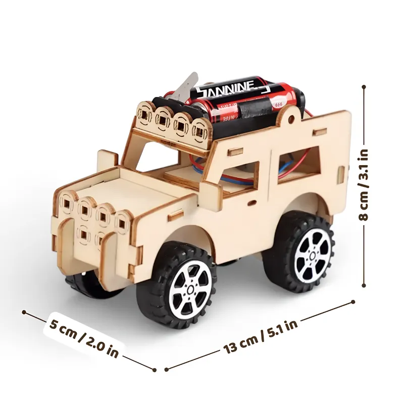 Montar o jipe de madeira com meu irmãozinho foi super divertido! Ele se moveu quando terminamos, o que nos fez vibrar. Aprendemos muito sobre como os carros funcionam.