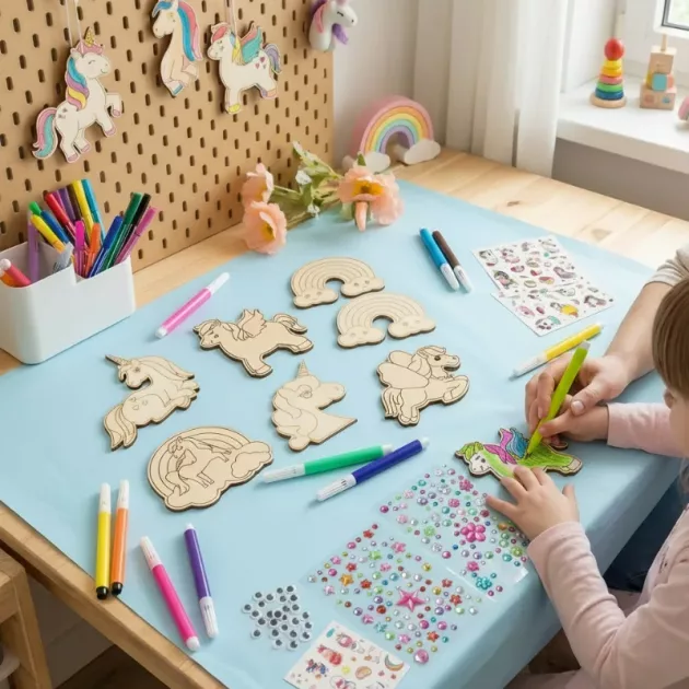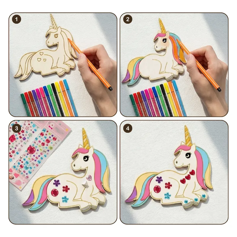 Kit de Artesanato Unicórnio de Madeira Faça Você Mesmo para Crianças