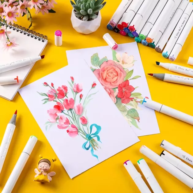 Essas canetas são incríveis—meu caderno de desenhos está cheio de ilustrações ousadas e vibrantes. Uso muito as duas pontas e elas nunca mancham a página.