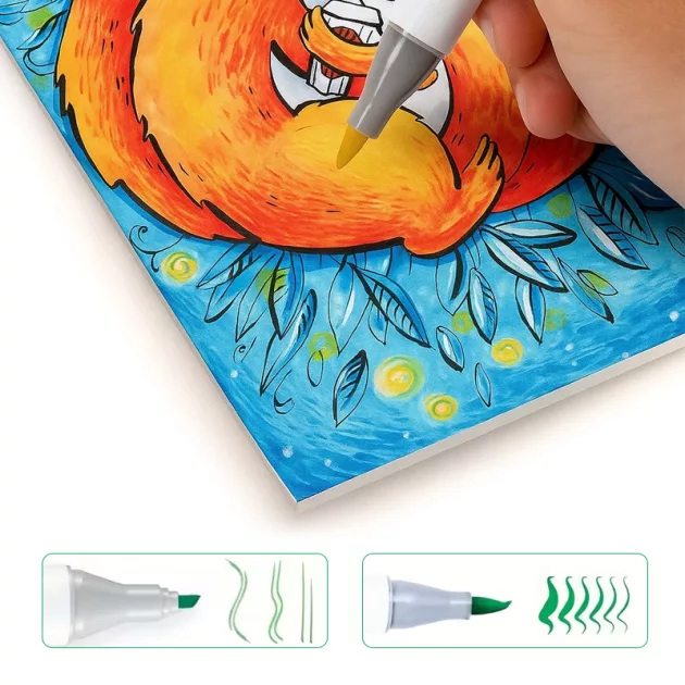 Desenhar no meu livro de colorir ficou muito mais divertido. Posso usar a ponta fina para detalhes e o outro lado para preencher os fundos.