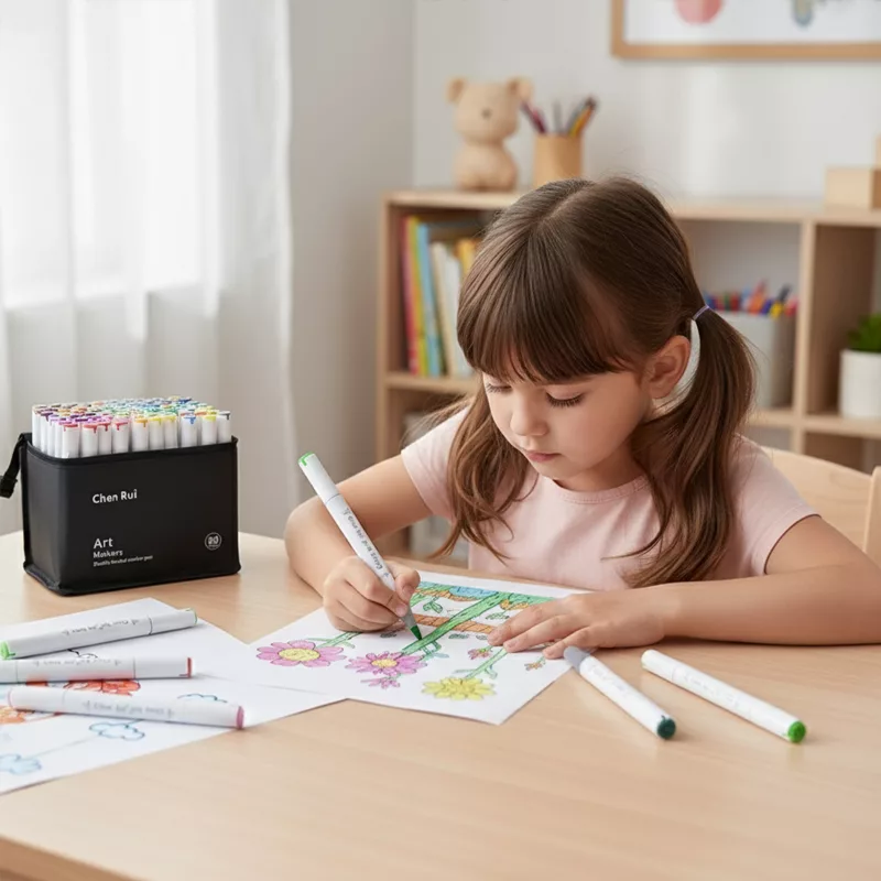 Desenhar no meu livro de colorir ficou muito mais divertido. Posso usar a ponta fina para detalhes e o outro lado para preencher os fundos.