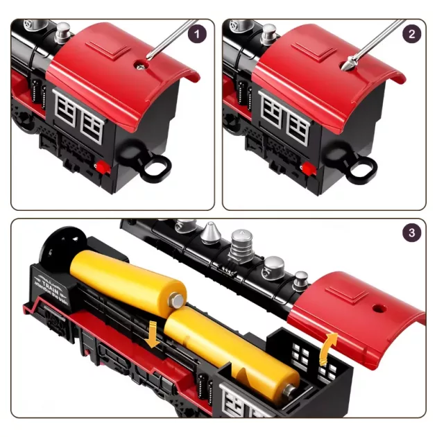 O trem fica dando voltas e faz barulhos realistas como um de verdade. Eu adoro criar novos trilhos toda vez que brinco.