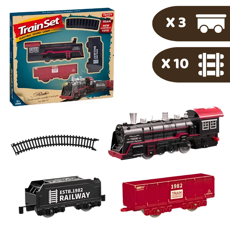 O trem fica dando voltas e faz barulhos realistas como um de verdade. Eu adoro criar novos trilhos toda vez que brinco.