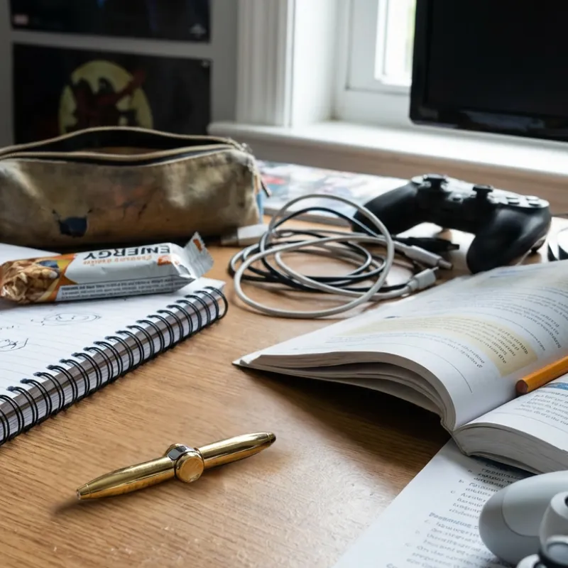 Minha professora disse que eu fico menos inquieto agora. Segurar essa caneta e girar enquanto leio me dá algo para fazer.