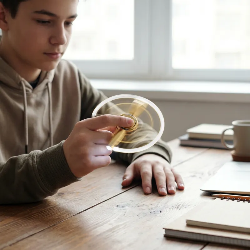 Esse spinner facilita para eu focar. A luz deixa meu armário muito legal e ajuda no corredor escuro.
