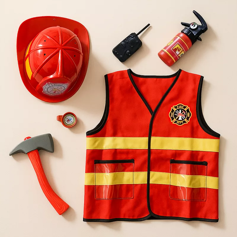 O colete e o capacete parecem de verdade! Meu irmãozinho adora fingir que é bombeiro e salvar nossos bichos de pelúcia.