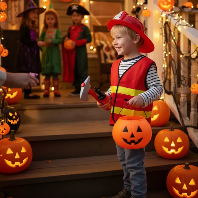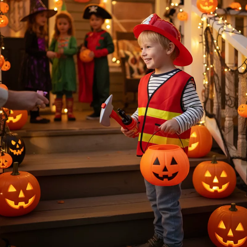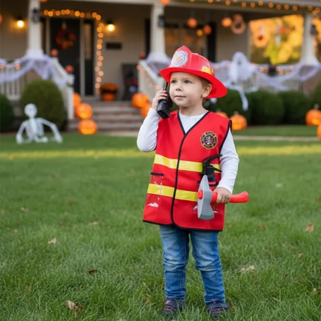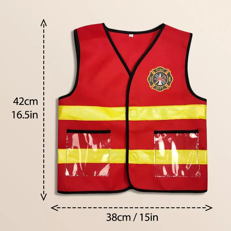 Fantasia de Bombeiro para Festa de Halloween Colete de Segurança e Capacete para Crianças