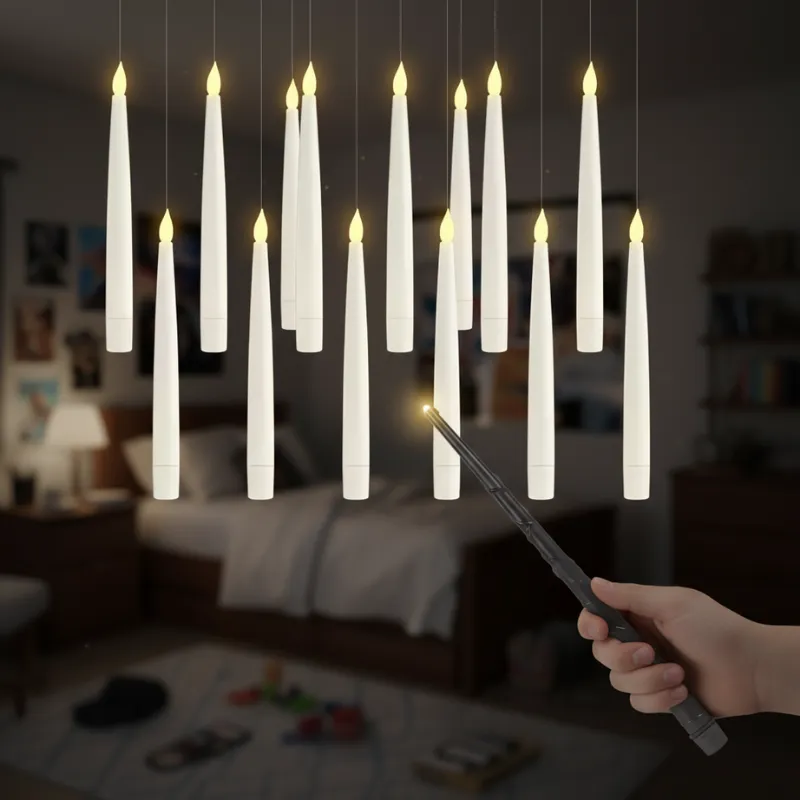 As velas flutuantes tornam as noites de cinema tão divertidas, e meu irmãozinho adora balançar a varinha para acendê-las na hora de dormir.