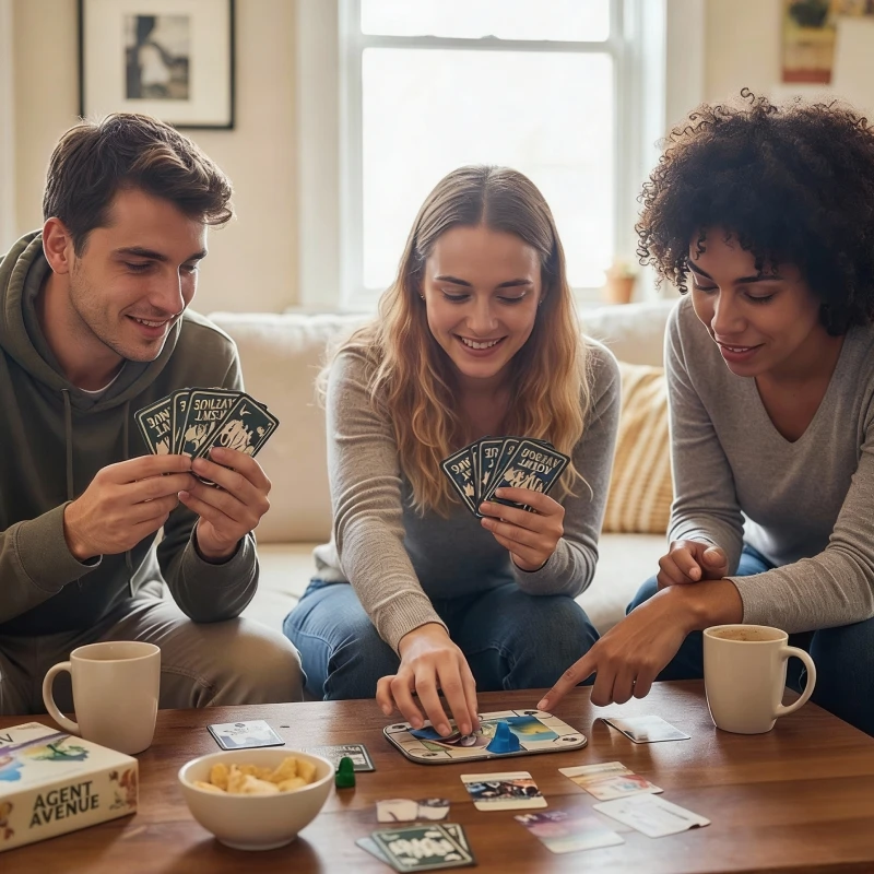 Agent Avenue é perfeito para noites de jogos em família. Todos colaboram e há muitas risadas quando alguém resolve uma carta difícil.
