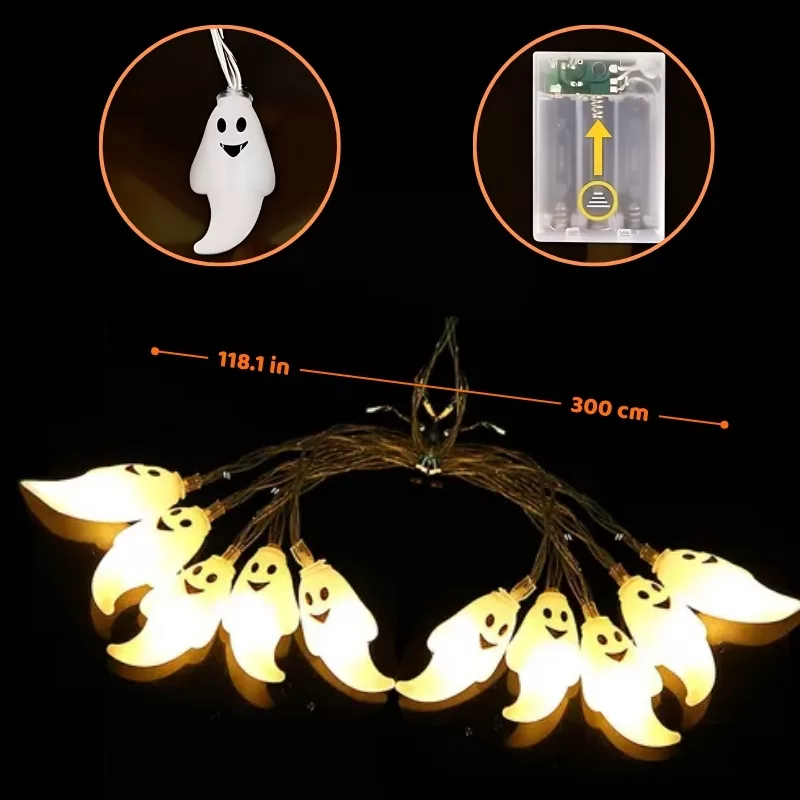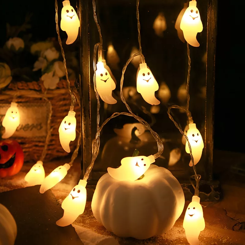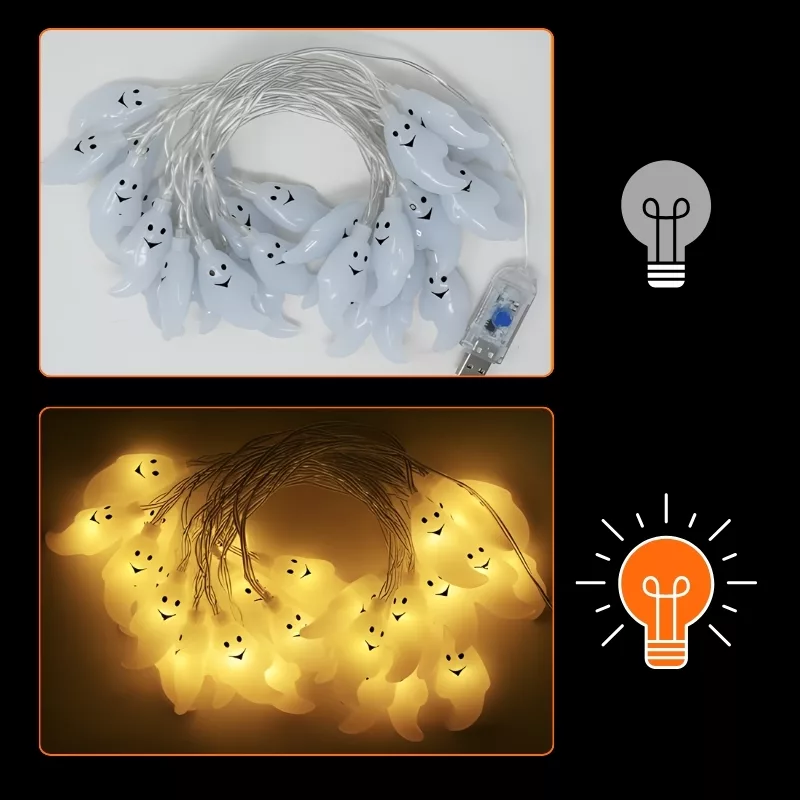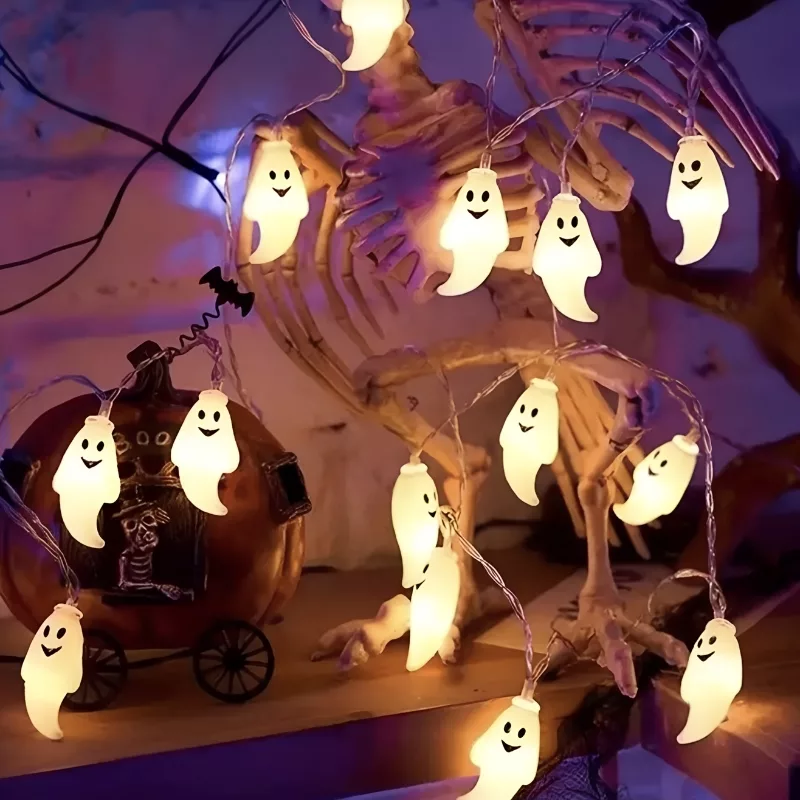Essas luzes de fantasmas tornam toda noite especial. Meus amigos disseram que meu quarto ficou incrível durante nossa festa do pijama de Halloween. Amo o brilho aconchegante.