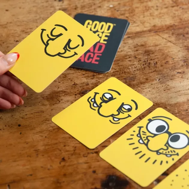 Minha irmã e eu rimos das caretas que fazemos com este baralho. Mamãe diz que estou mais confiante para falar sobre meus sentimentos agora.