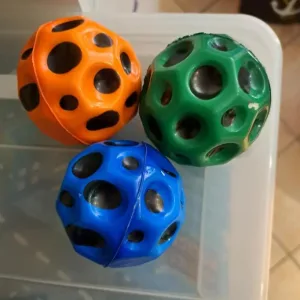 Estas bolas são coloridas e divertidas para brincar, tanto que os meus netos largam os seus eletrônicos para brincar com as bolas. As bolas fazem um barulho engraçado quando quicam no pavimento, e isto é o que os meus netos acham tão divertido. Diversão para todas as idades.