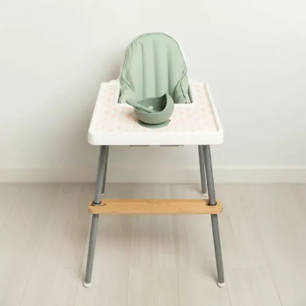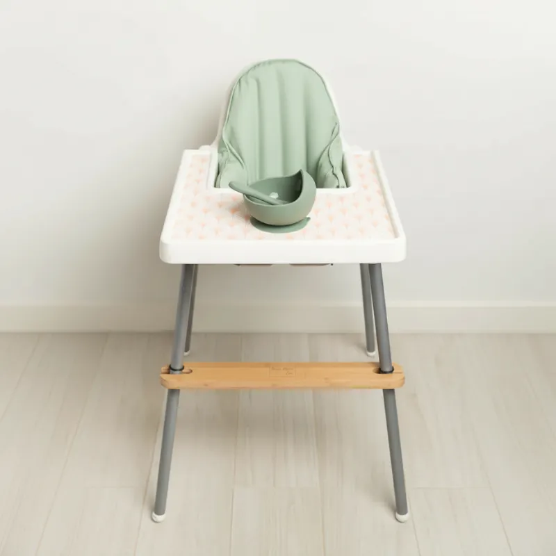 Suporte Estável - Uma plataforma segura mantém as pernas posicionadas corretamente, reduzindo o balanço durante o uso. Essa estabilidade extra ajuda as crianças a se sentirem seguras e confortáveis durante as refeições.