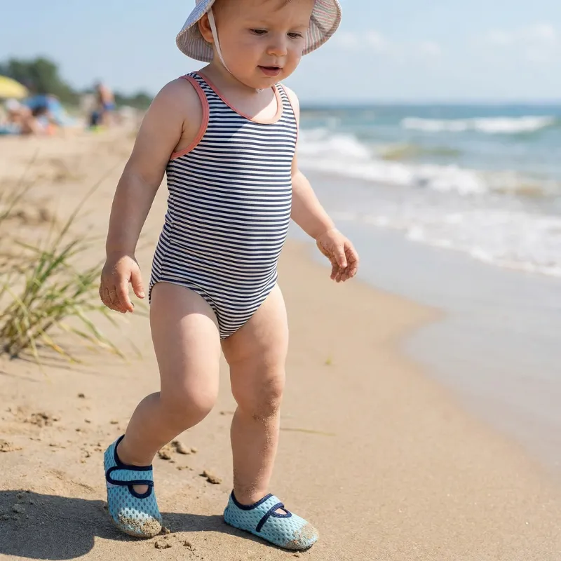 Estes sapatos de praia salvaram meus nervos nas férias. Nosso pequeno andou facilmente sobre areia quente e pedras molhadas, sem escorregões, sem choro, só passeando feliz pela beira do mar.