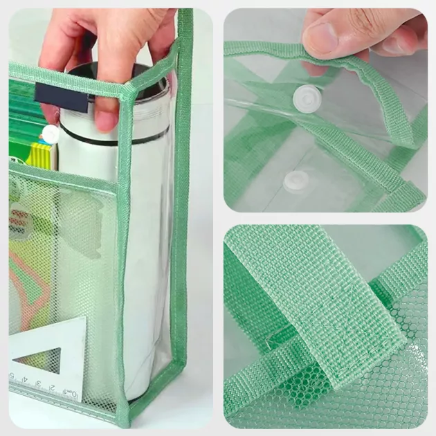 Nunca mais perca bilhetes nem tenha mochilas bagunçadas de manhã. As crianças veem cada livro ou folha facilmente graças ao design transparente. Carregar materiais é simples e confortável para as mãos.