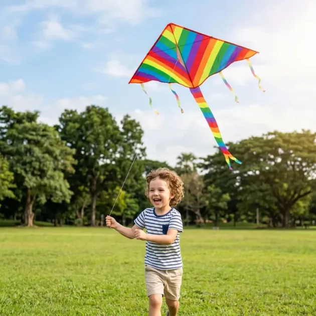 Listras coloridas dançam sobre os parques, transformando passeios simples em momentos mágicos. As crianças sentem orgulho ao controlar algo bonito voando bem alto. O tecido resistente aguenta dias de vento leve, mantendo a brincadeira tranquila e sem estresse.